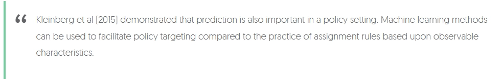 In this context the critical observation is that the impact of a policy also depends on how effective it is in selecting its targets. Examples include hiring decisions based on predictions of an employee’s productivity, the allocation of program services prioritized on predictions of who might benefit the most, and pre-trial bail decisions informed by predictions about recidivism.