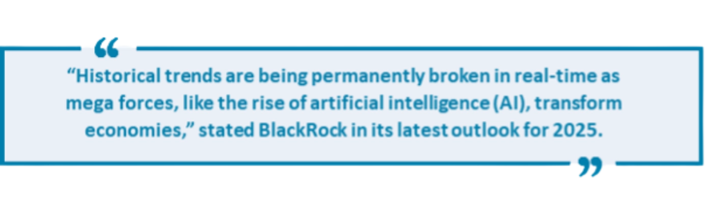As the world’s largest investment manager, BlackRock underscores the transformative impact of technological advancements while advising investors to prioritize U.S. equities, actively managed funds, and private markets. These recommendations align with its commercial strategy, notably its recent acquisition of private-credit firm HPS Investment Partners. While BlackRock’s outlook serves its business interests, the advice reflects a valid market insight: valuations are increasingly influenced by broader technological, economic, and political shifts rather than traditional metrics alone.